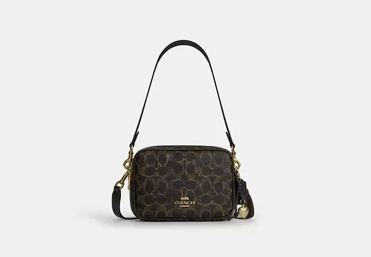 - Detachable strap with 21 3/4″ drop for shoulder or crossbody wear